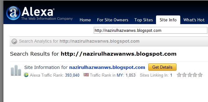 Traffic blog Suratan Kebetolan juga adalah baik. Setakat hari ini, traffic ranking Alexa adalah bawah 400k. Site linking masih 1 menjadikan Page Ranking masih 0. Penambahan site linking boleh dilakukan melalui sertai blog directory, top site, link exchange dan sebagainya.