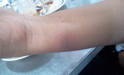 Akibat letupan wayar tersebut, tangan Mrs Sop telah melecur.