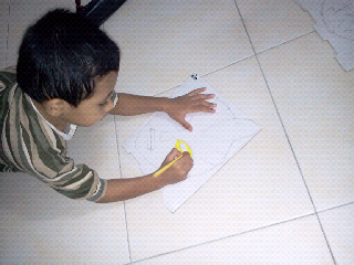 Semalam semasa di Tesco Ampang, dilihatnya topeng yang dijual di kedai. Bersungguh-sungguh beliau ingin beli topen power rangjers tersebut. Untuk memujuk tidak membelinya, Sop umpan untuk ajak balik dan buat sendiri topeng.
