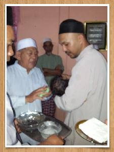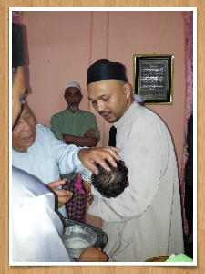 Majlis diadakan secara ringkas sahaja iaitu dimulakan dengan solat hajat, Majlis Khatam Al Quran dan Majlis Cukur Rambut.
