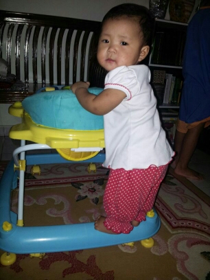 Petang tadi baru dapat tahu Baby Auni telah mula memanjat walker. Tengok gambar bagaimana Baby Auni berdiri?