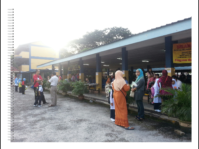 Proses orientasi tahun 1 diteruskan dengan pelajar dibawa ke kelas dan ibubapa pula diberikan taklimat oleh pihak sekolah. Selesai taklimat, ibubapa ke kelas anak-anak untuk sesi mengisi maklumat dan mengambil buku teks. Kami juga sempat membeli buku latihan, tie dan lencana di kedai buku sekolah.